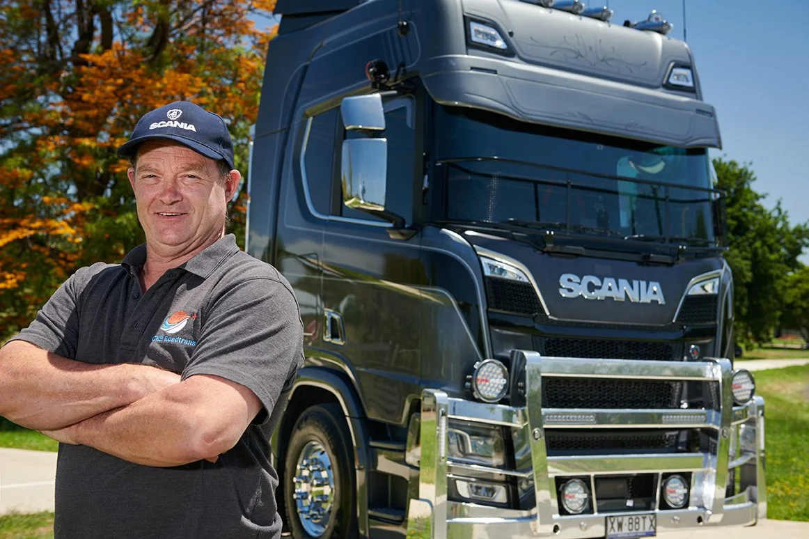 “Scania sends me a message when it's due for service. I contact them, book it in, and drop it off at Scania Campbellfield. So that's one less thing for me to worry about as an owner-driver. I used to service the old truck myself, buy the oils and that. But this Scania oil, is a long-life oil. I used to be against that, but I dipped the oil after 40,000 km, and it's not discoloured. I held it up to the sunlight, it's still golden, not the putrid black you'd expect after that distance, so I'm pretty happy about that. Now I have saved a half a day of downtime and there’s no mess or fuss like when I am servicing the truck myself.”