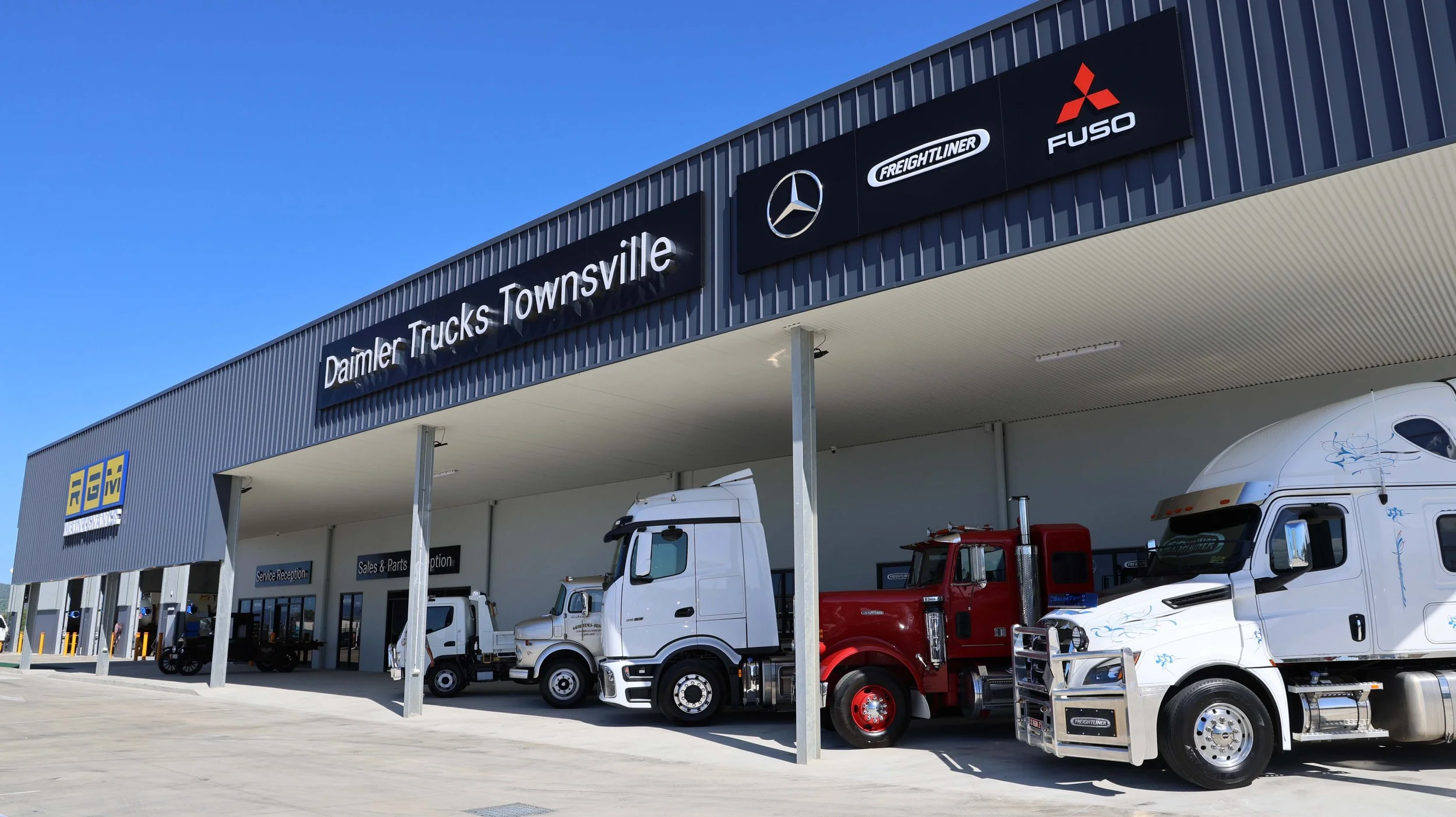 Daimler Trucks Townsville sells and supports all Freightliner and Mercedes-Benz Trucks vehicles, as well as Fuso trucks and buses at the Heleen Downs facility.