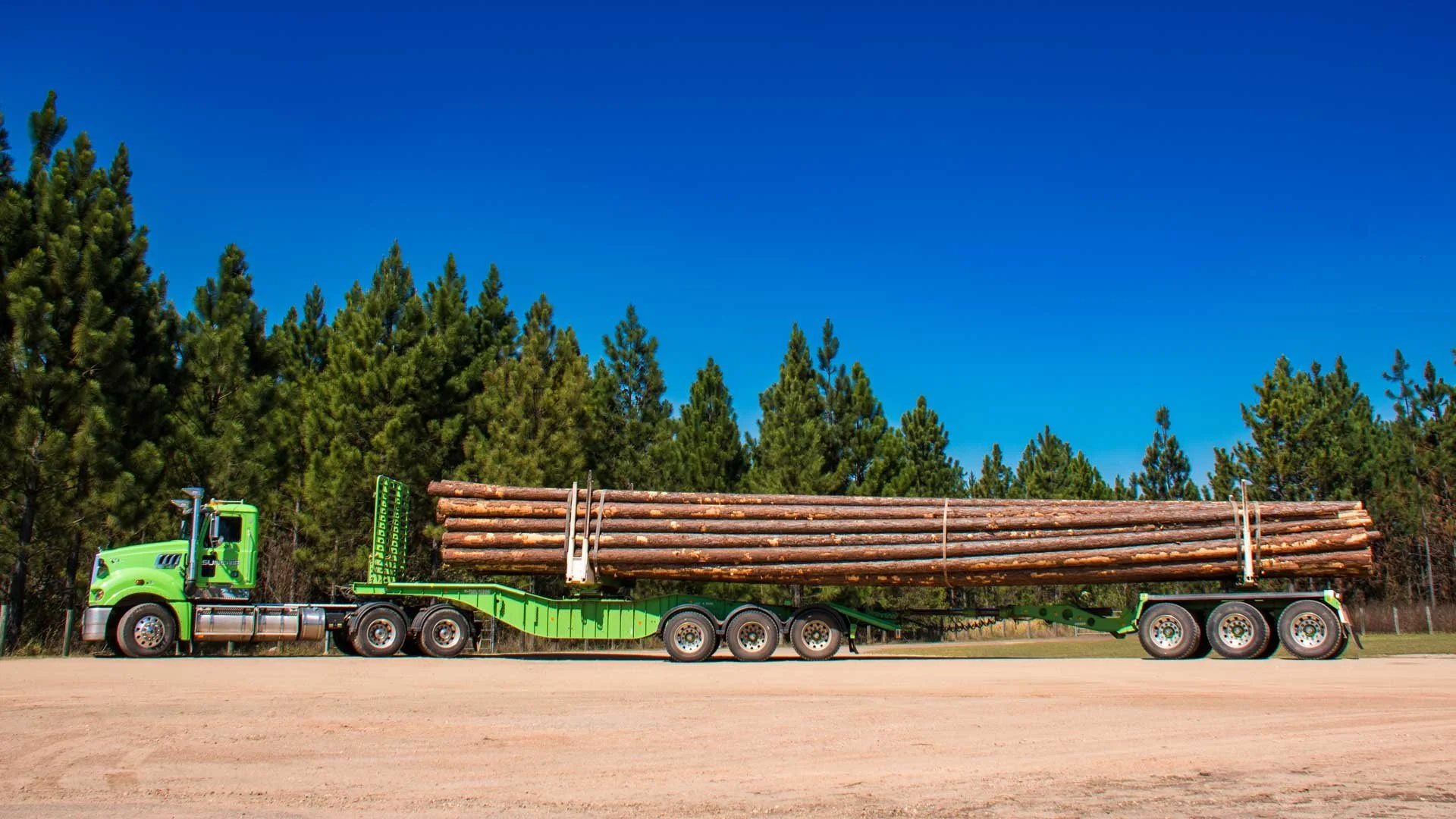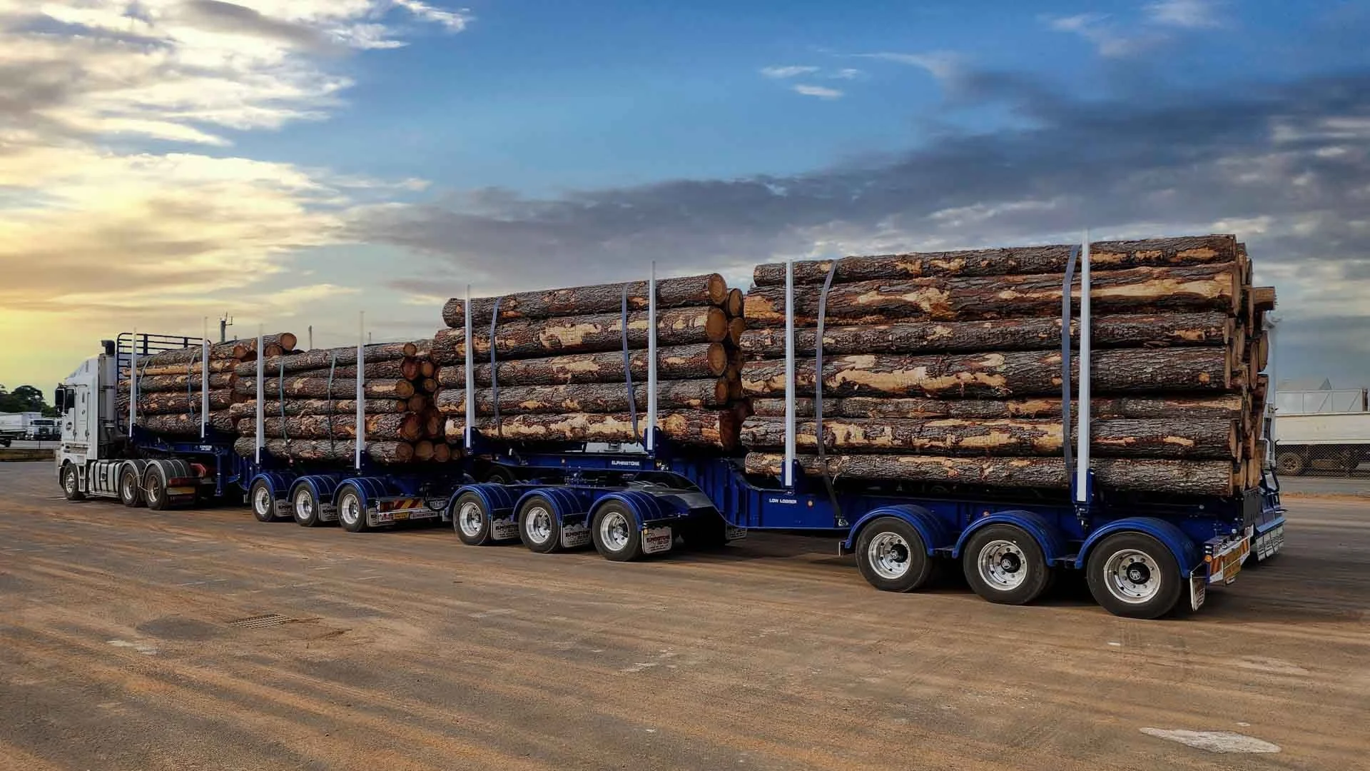 An Elphinstone Low-Logger A-Double in Bunbury, Western Australia.