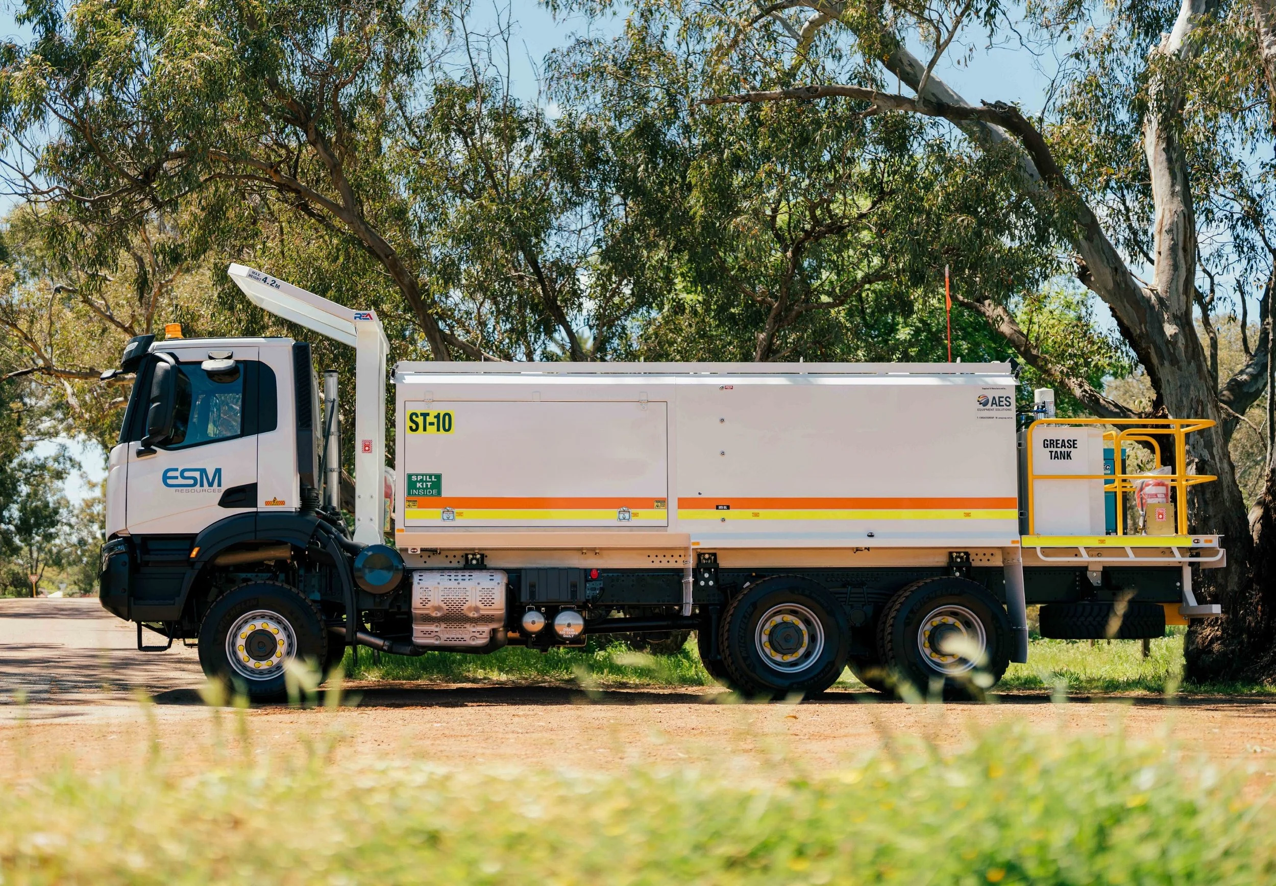ESM Resources’ newest T-Way is fitted with an AES 7000 service body which features all the tools and equipment for remote servicing including a variety of on-board pumps and compressors, and tanks for water, diesel, oils, grease, coolants and more.