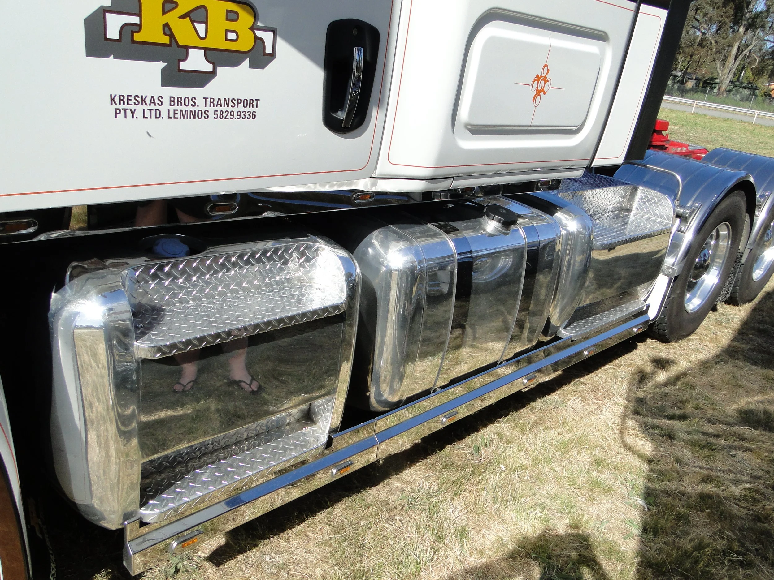 Unable to help themselves though, the business added a couple of modifications to the truck, primarily in regard to the tanks. “We modified the tanks so it looks like a quad system, said Jason. “Our engineering shop got hold of a couple of old Benz tanks – keeping it in the (Daimler) family -chopped them up and modified them. It looks like quads and is something totally different, filling the space between the cab and rear axles.”