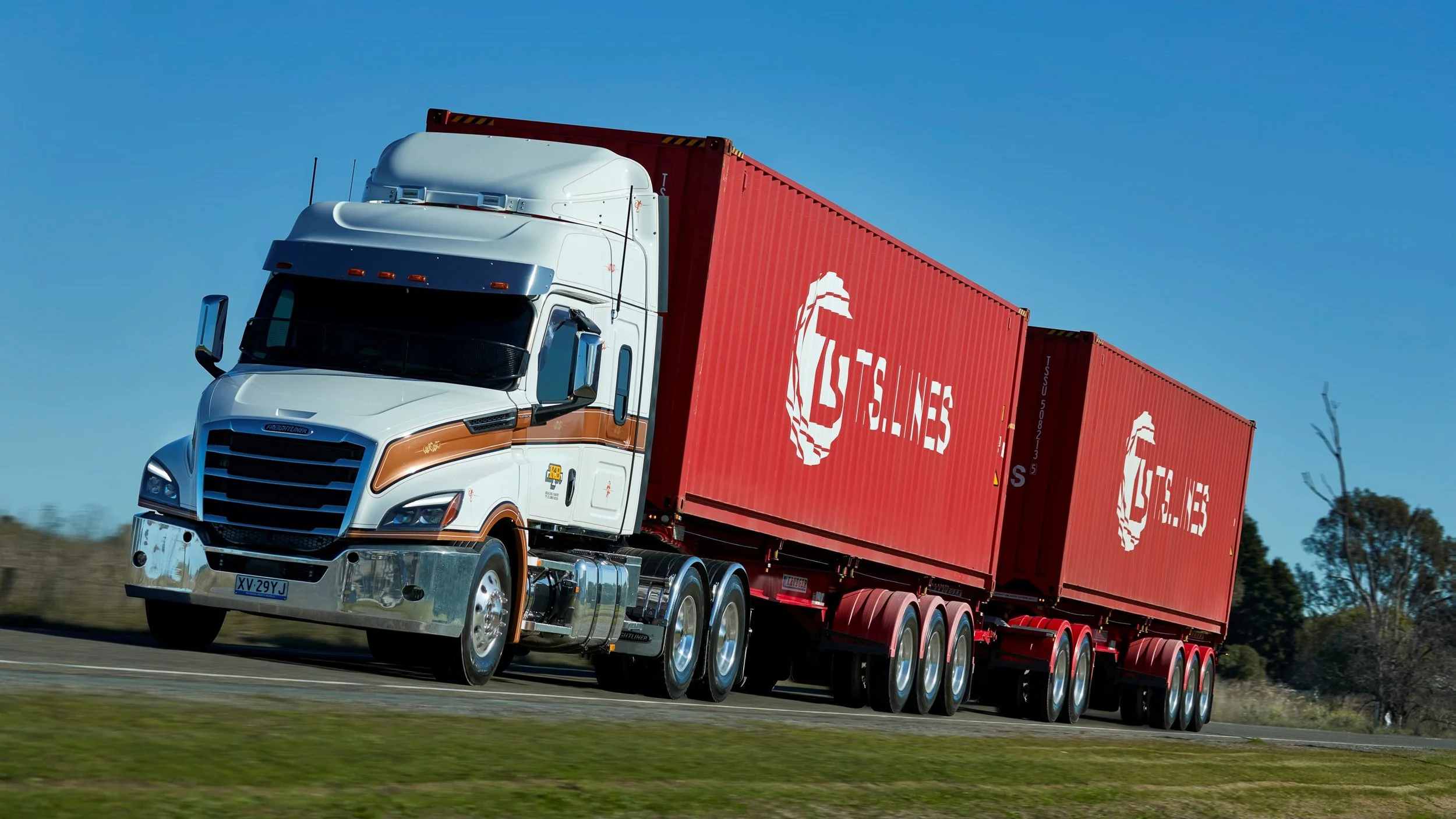 In the five plus years I’ve lived here 90% of those containers would have a Kenworth cab over in front of them – the other 10% with maybe a Western Star or Mercedes Actros. Then, in late 2019 one of their Doubles passed me with a Freightliner Cascadia 126 doing the hauling work. This was just months after the truck’s Australian launch.